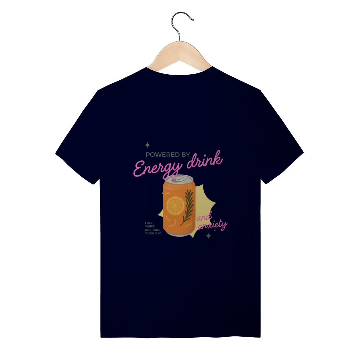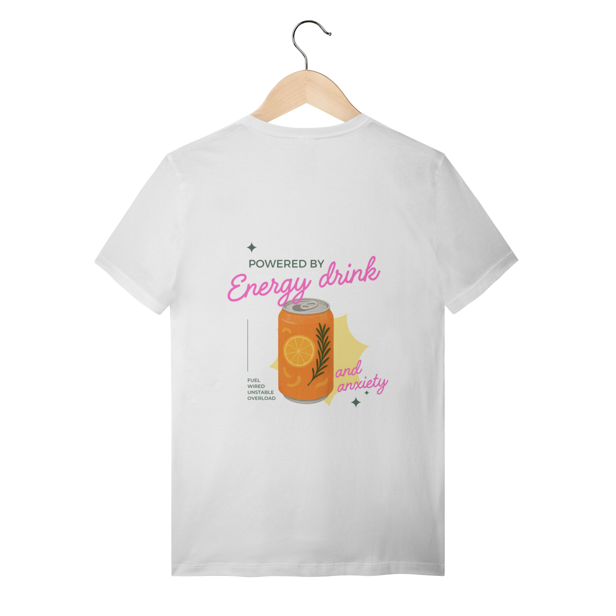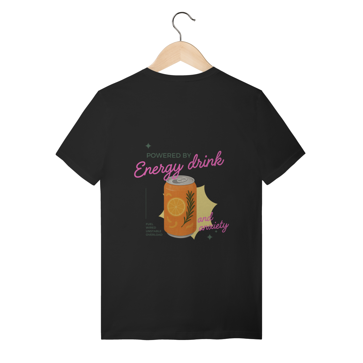 O combustível que ninguém admite, mas todo mundo entende. Se o seu treino é movido a energético e um pouquinho de caos interno, essa estampa é a sua cara. Perfeita para suar a camisa e mostrar sua personalidade na academia.